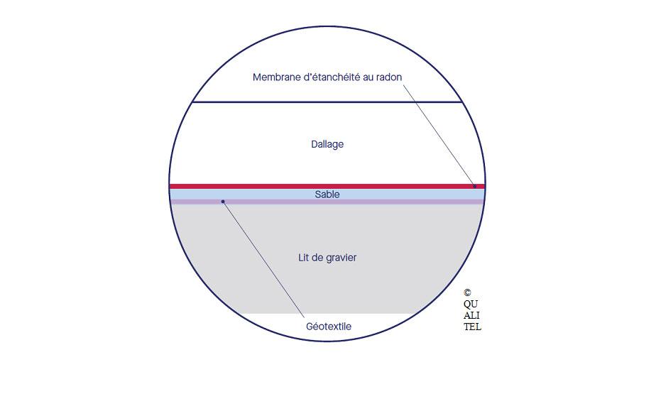 Il consiste à extraire l’air présent sous le dallage et de l’évacuer via un conduit d’extraction vers l’environnement extérieur en générant une légère dépression du soubassement vis-à-vis du bâtiment.
